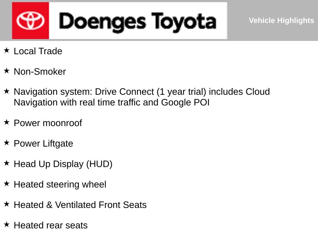 ⢠Navigation system: Drive Connect (1 year trial) includes Cloud Navigation with real time traffic and Google POI