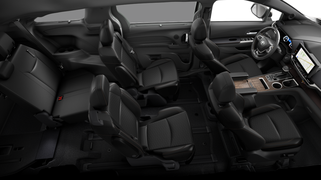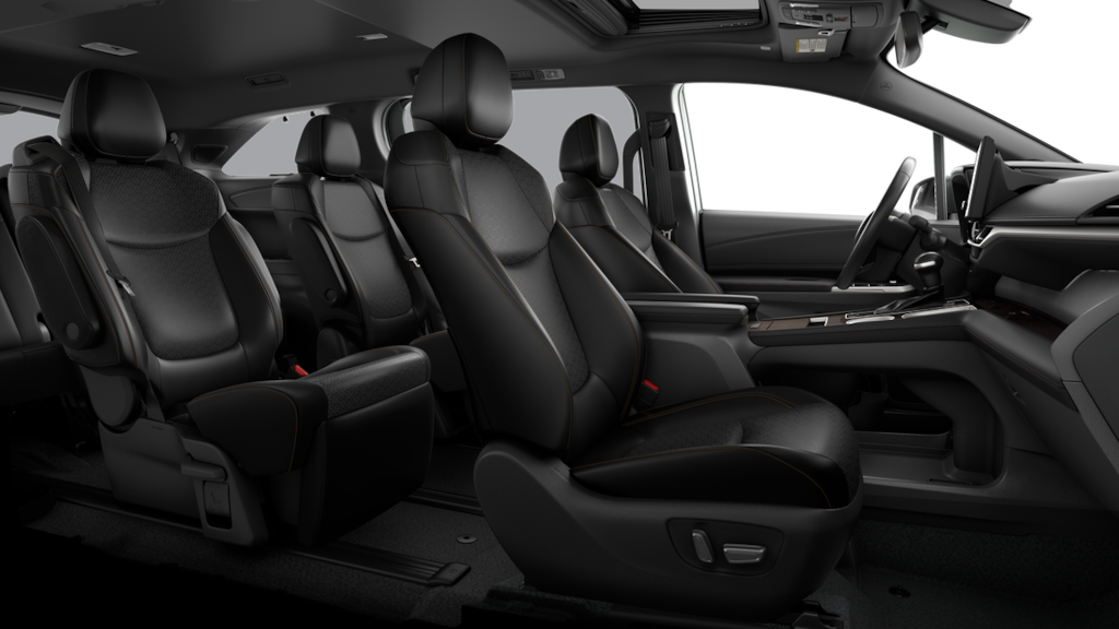 • 7-passenger seating with premium leather-trimmed second-row-seat captain's chairs with super-long-slide feature and ottomans