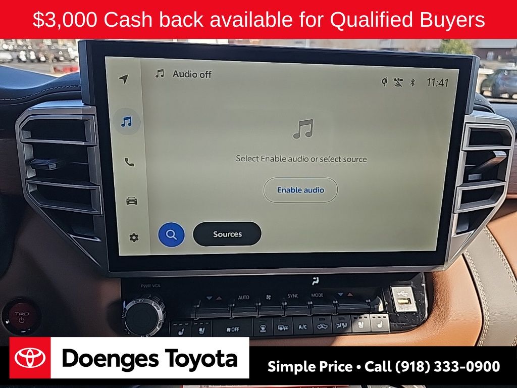 Conditional Special offers may require financing or leasing through a particular financial services vendor, are for a limited time and subject to change without notice. All rebates and incentives are to be assigned to the dealer. Some special advertised offers are independent of each other and may not be combined with any other offers or specials. Some incentives may not be available to all consumers and may depend on method of purchase, or lease. All vehicles are subject to prior sale. While every effort has been made to ensure display of accurate data, the vehicle listings within this website may not reflect all accurate vehicle items. The vehicle photo displayed may be an example only. Vehicles may be in transit or currently in production. Some vehicles shown come with optional equipment which may affect the price. Because of the numerous possible combinations of vehicle models, styles, colors and options, the vehicle pictures on this site may not match your vehicle exactly; however, it will match as closely as possible. TSRP and equipment may on vehicles in build phase may change before delivery. See the actual vehicle details page for complete accuracy of features, options & pricing. Vehicle pricing does not include a $149.95 Dealership Document Processing fee, as well as government tax, title, lien entry and registration fees. Pricing is subject to change without notice, and the currently offered price may not be accurately reflected on the website today. Call us at (918) 333-0900 for details and to confirm the currently offered price plus fees and amount due at signing on any vehicle or currently advertised offer. See dealer for details.