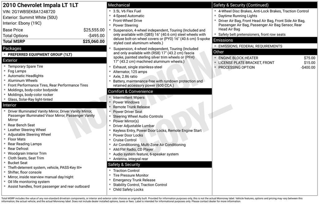 Pre-Owned 2010 ChevroletImpala LT Front-wheel Drive
