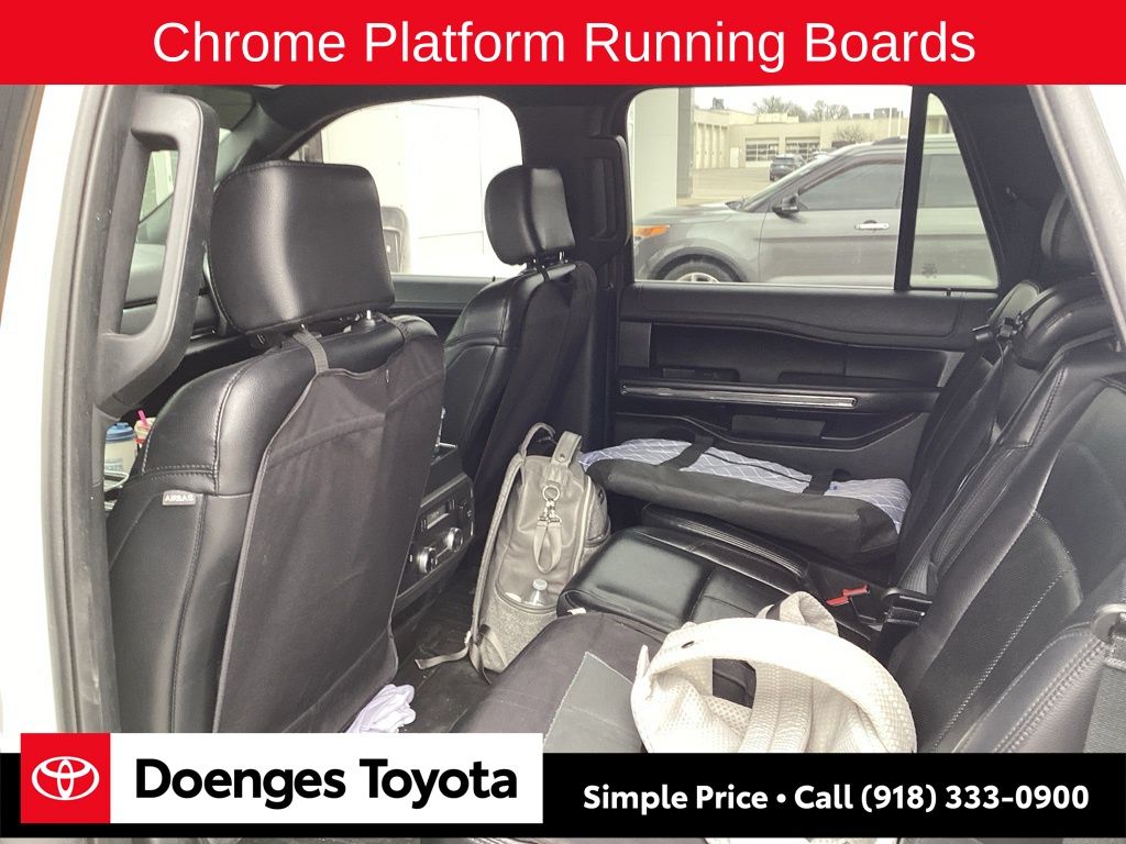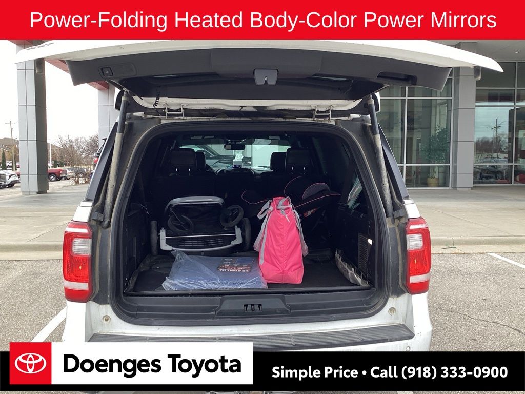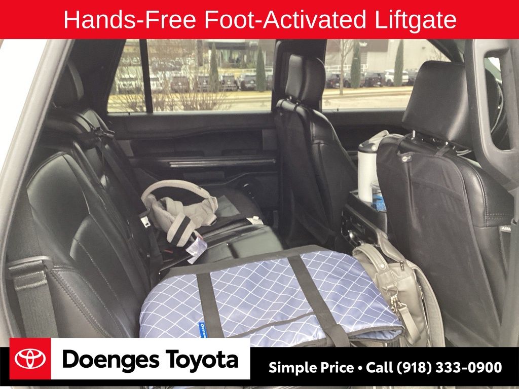 Exterior highlights include the chrome platform running boards, power-folding heated body-color mirrors, and the hands-free foot-activated liftgate, which make loading and unloading a breeze. The 18-inch machined-face aluminum wheels and sleek white exterior further enhance the Expedition Max's bold and sophisticated appearance.