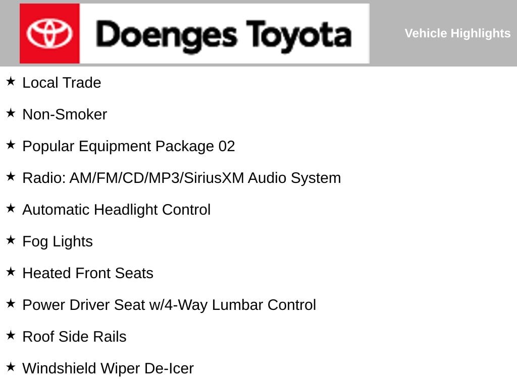 - Option Group 02 including Roof Side Rails, Heated Front Seats, Automatic Headlight Control, Power Driver Seat, and more