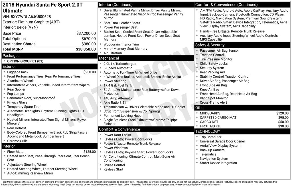 Pre-Owned 2018 Hyundai Santa Fe Sport 2.0L Turbo Ultimate All-wheel Drive
