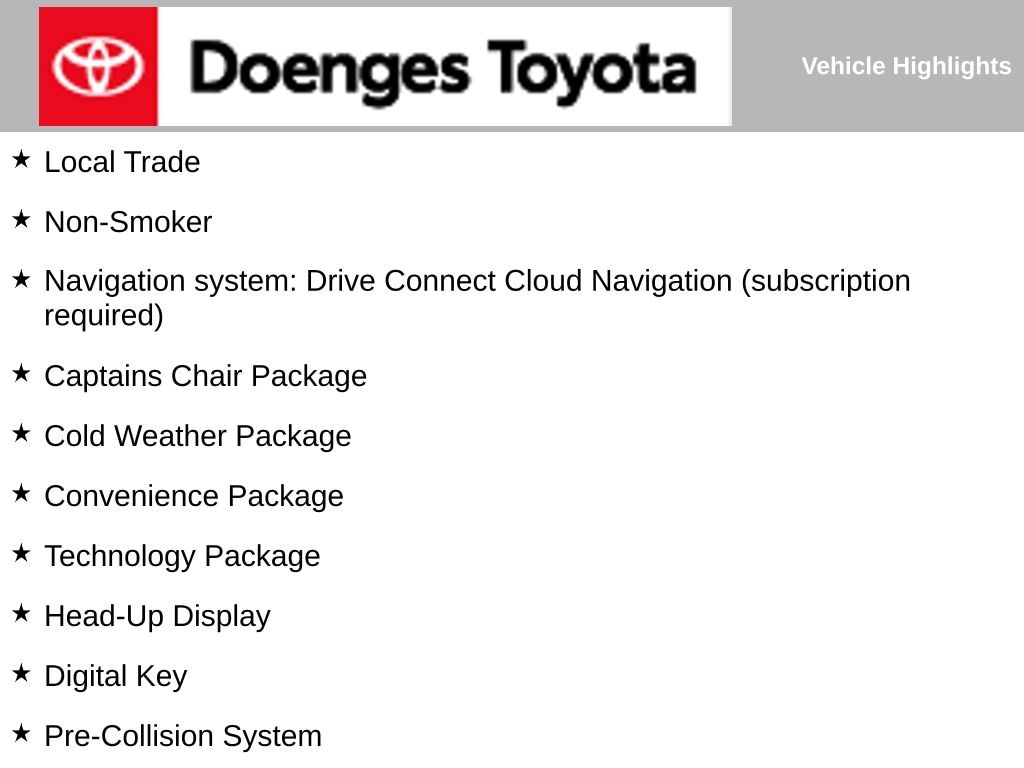 - CONVENIENCE PACKAGE: Pre-Collision System, Lane Keeping System, Rear Side Monitor, Digital Key