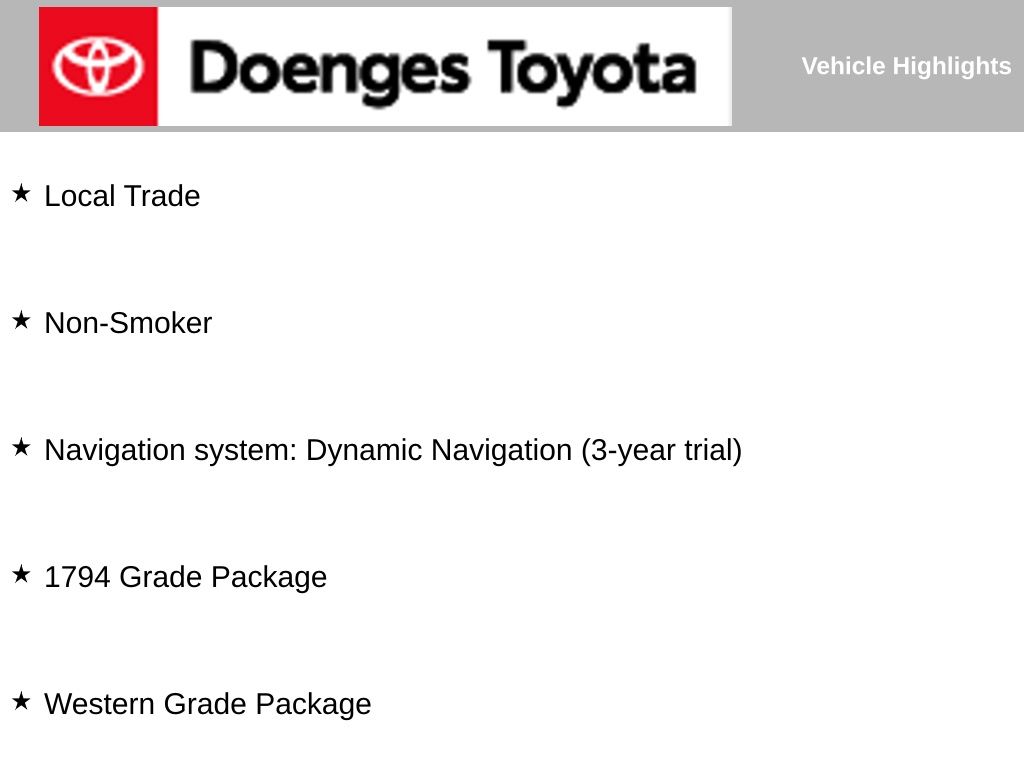 This 2021 Toyota Tundra 1794 is a true gem, blending exceptional capability, advanced technology, and refined luxury. Experience the power and versatility of this remarkable truck for yourself. Contact us today to schedule a test drive and discover why the Tundra 1794 is the perfect choice for your next adventure.