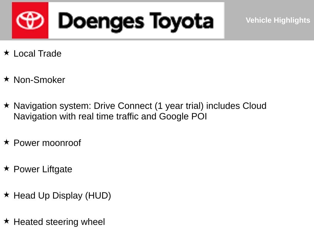 ⢠Navigation system: Drive Connect (1 year trial) includes Cloud Navigation with real-time traffic and Google POI