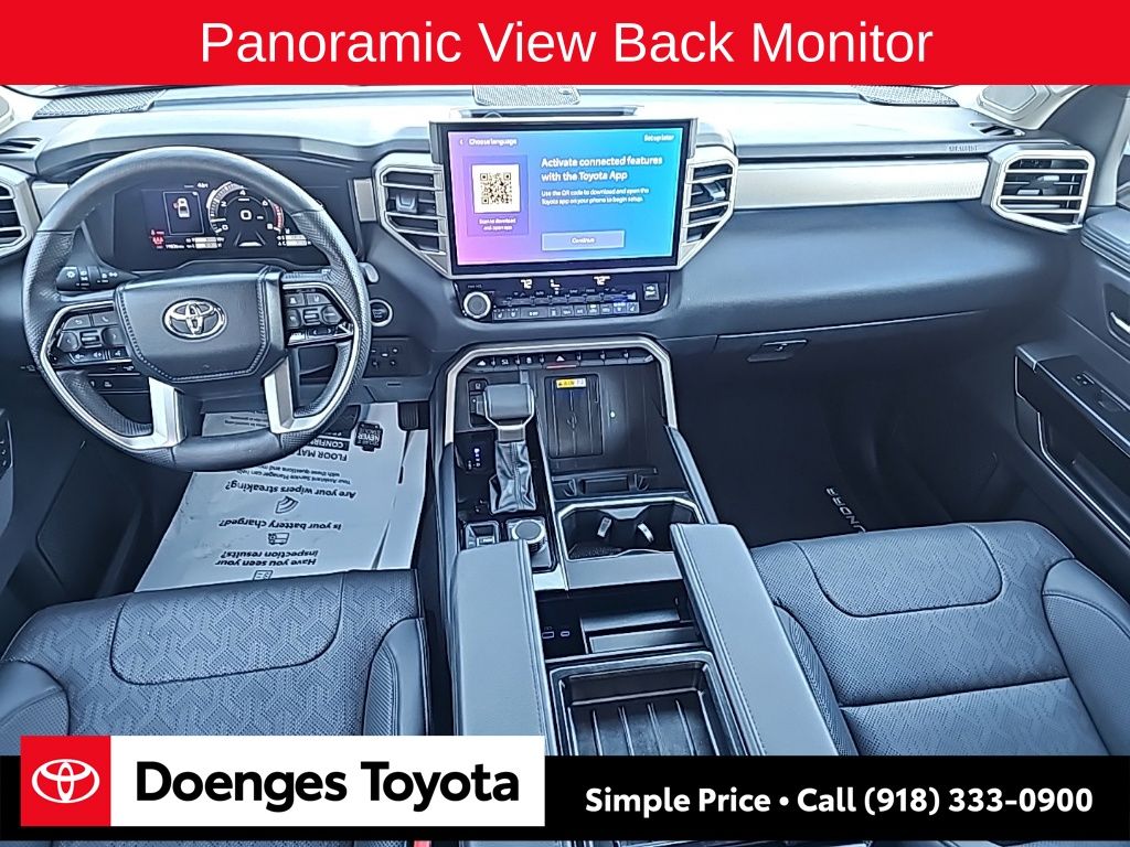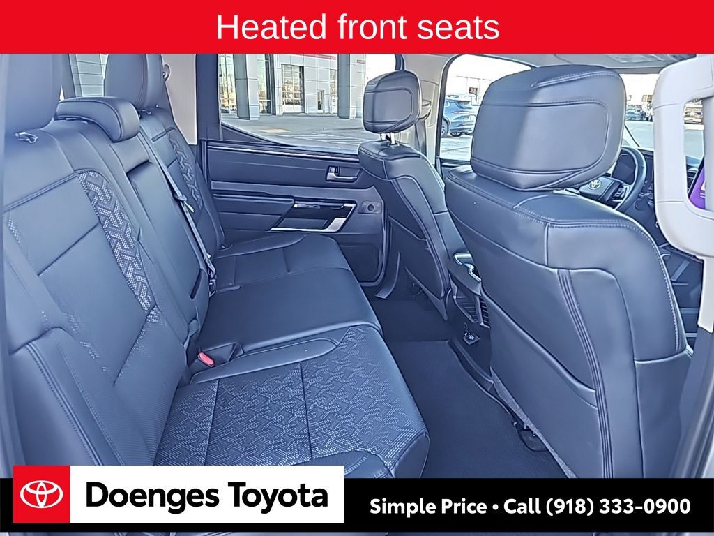 With its striking silver exterior, the 2024 Toyota Tundra Limited is a true head-turner. Its bold, muscular design and 20-inch alloy wheels command attention, while the available Panoramic View Monitor and Spray-On Bed Liner with Storage Box add both style and functionality.